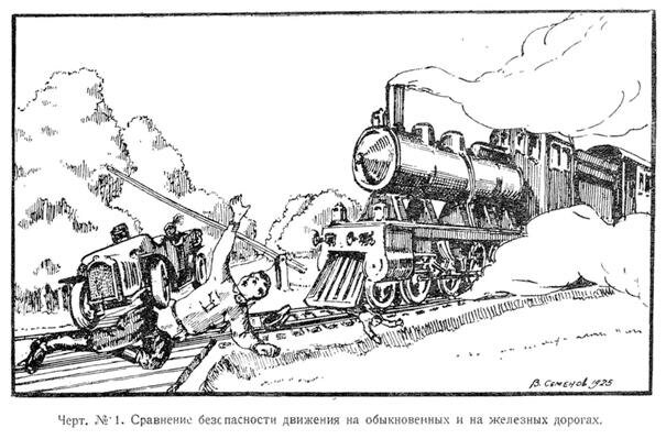 Что касается безопасности передвижения, то статистика несчастных случаев доказывает преимущество железных дорог перед остальными видами транспорта. Так, на русских железных дорогах 1 убитый приходится на 105.500.000 пассажиро-км. Это значит, что, если по экватору земли (длина экватора 40,008 километров) была бы проложена железная дорога, то можно было бы объехать экватор совершенно безопасно 2.500 раз. Статистика несчастных случаев на улицах больших городов мира (Лондон, Нью-Йорк), указывает, что безопасность движения на железных дорогах СССР примерно в 20 раз больше (черт. № 1). Можно утверждать, что на железных дорогах СССР количество жертв ничтожно. Между тем, кораблекрушения, бури, столкновения и пожары судов, а также несчастья всякого рода при конной езде значительно чаще. При автомобильном и воздушном транспорте несчастья и аварии всякого рода пока еще очень часты.
