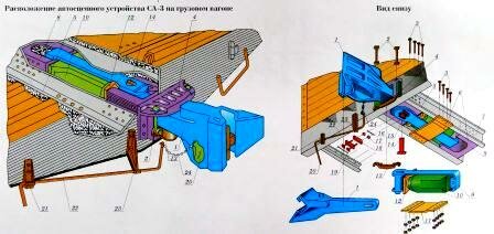 Расположение автосцепного устройства СА-3 на грузовом вагоне
