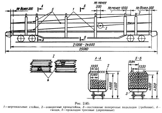 § 2. Погруженный на открытый подвижной состав груз с учетом упаковки и крепления должен размещаться в пределах установленного габарита погрузки при условии нахождения вагона на прямом горизонтальном участке пути и совпадения в одной вертикальной плоскости продольных осей подвижного состава и пути. При этом размеры груз будут соответствовать габариту погрузки в поперечных сечениях, если его длина не превышает значений, указанных в табл. 1.1.