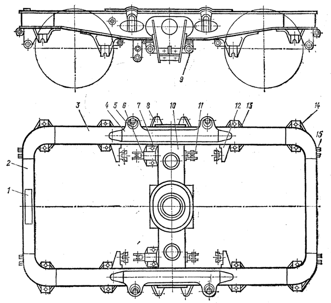 D_1.1 РЕМОНТ РАМ ТЕЛЕЖЕК ЭЛЕКТРОВОЗОВ ВЛ10, ВЛ111 Краткие сведения о назначении и конструкции рамы тележки1.1 Назначение тележекМеханическая часть электровоза предназначена для размещения электрического, пневматического и тормозного оборудования и пультов управления; восприятия и передачи горизонтальных продольных и поперечных сил; передачи и распределения вертикальных нагрузок от массы электровоза на путь и обеспечения движения электровоза по рельсовому пути. Она состоит из кузова и тележек. Тележки могут быть сочлененными, т. е. механически связанными между собой посредством сочленения, и несочлененными (свободными). Если автосцепные устройства размещены на рамах тележек, то сочленение предназначено для передачи продольных сил (тяги, торможения) и кузов продольные силы не воспринимает и не передает (электровозы ВЛ8, ВЛ23). В тех случаях когда автосцепные устройства установлены на раме кузова, то применяют несочлененные тележки (электровозы ВЛ10, ВЛ11, ВЛ12) или тележки с упругой поперечной связью (ЧС2, ЧС2Т), рама кузова воспринимает от тележек и передает горизонтальные продольные силы на автосцепные устройства. 1.2 Устройство рам тележекОсновные узлы тележки: рама 1 (рис. 1), колесные пары 3 с буксами и буксовое подвешивание 4. На тележках устанавливают тяговые двигатели 2 с тяговыми передачами и тормозное оборудование 5 (тормозные цилиндры, тормозные рычажные передачи и колодки). Рис.1 Тележка ВЛ-10 Продольные балки изготовлены из четырех листов стали марки М16С: двух вертикальных толщиной 10 мм и двух горизонтальных толщиной 14 мм. К нижнему листу продольной балки приварены большие 4 и малые 1 кронштейны буксовых поводков, отлитые из стали 12ГТ-П; верхний лист в средней части имеет усиливающую накладку. К каждой продольной балке снаружи приварены по два кронштейна 6 люлечных подвесок и кронштейн 7 для установки гидравлических гасителей колебаний, а с внутренней стороны — кронштейны 11 для подвесок тормозной рычажной передачи. Рис. 2. Рама тележки электровоза ВЛ10 с люлечным подвешиванием 1.3 Технические данные тележки