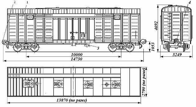 Независимо от типа и назначения все вагоны состоят из четырех основных узлов (рисунок 1.1): кузова 1, ходовых частей 4, ударно-тяговых устройств 2, тормозного оборудования 3.