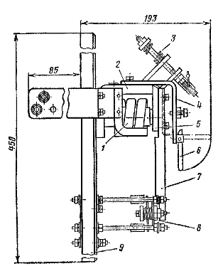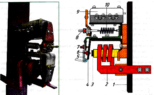 7 – изолированный рычаг; 8 – блок-контакты; 9 – текстолитовая панель