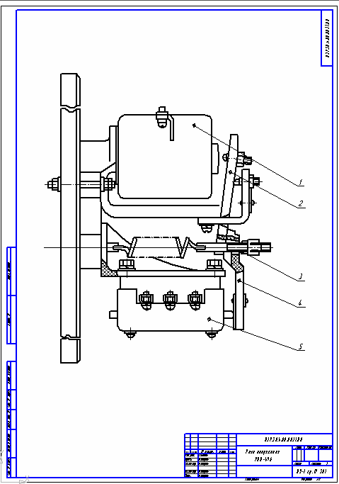1 – токовая катушка; 2 – ярмо магнитопровода; 3 – отключающая пружина; 4 – скоба; 5 – якорь; 6 – Указатель срабатывания (флажок);
