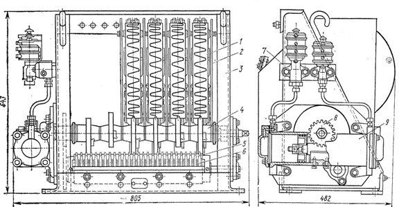 ПКГ-4 и ПКГ-6 состоят из: 1. Каркаса; 2. Кулачкового вала; 3.Контакторных элементов (кэ); 4.Электропневматического привода.