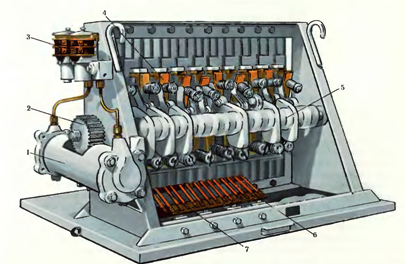 1-пневматический привод; 2-шестерня; 3 электромагнитные вентили; 4-контакторный элемент; 5- кулачковый вал; 6,7 – блокировочные контакты
