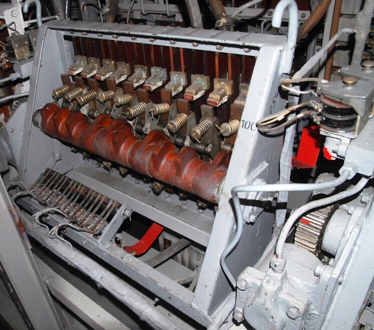 Так как переключение силовых цепей происходит при отсутствии тока, дугогасительной системы кулачковые элементы не имеют. Переключатели имеют два положения. В одном из них выступ кулачковой шайбы нажимает на верхний ролик коромысла, замыкая подвижной контакт с верхним неподвижным, во втором положении подвижной контакт замыкается с нижним неподвижным.