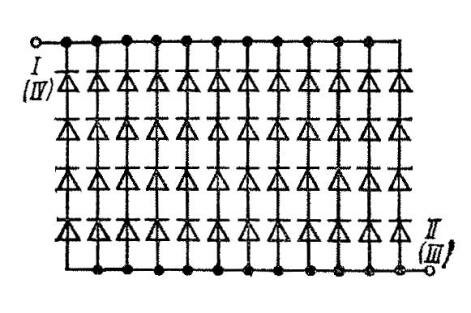 Плечо моста содержит 4 последовательно и 12 параллельно соединенных диодов (рис.3).
