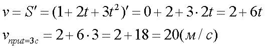 Задача А1- 3Решение. С течением времени изменяется пройденный путь. Это очевидно, ежу понятно. Ежи, думаю, знают, что такое "функция" и могут выразиться так: "Путь - это есть функция от времени". А если в их ежиные лапки вложить крарандаш, то они еще и запишут: Буква f здесь как раз и означает"какая-то функция". Может быть довольно простая зависимоть, напрмер S = 2t. То сеть тело двигается по такому закону, что за одну секунду (t=1) оно проходит путь за две секунды (t=2) за три секунды (t=3) и так далее. Вообще-то любое движение можно задать функцией. Это не всегда просто, но можно! Кто подзабыл, что такое производная, почитайте у нас на сайте по ссылке. Давайте найдем скорость - производную от нашей довольно-таки простой функции Отметим такую интересную штуку. Движение у нас неравномерное. Скорость в разные моменты времени не одинаковая. Скорость сама есть функция от времени. Поэтому в последней формуле кроме цифр затесалась и буква t. И говорить о неком численном значении скорости можно только уточняя: в какой именно момент времени? Верен ответ № 2. Задача А1- 4Какие каверзы могут замутить составители ЕГЭ по задачке с производными? Рассмотрим следующий пример. Сам порядок решения совершенно такой же. Верен ответ № 2. Можно рассматривать <<< Вернуться к теоретической подкладке --- Дальше к задаче А2 >>>