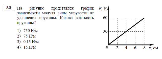 Задача А3 - 3Решение. Он такой же, как и прежде Fтяж = mg = 50 х 10 = 500 Н. Ответ № 3. Задача А3 - 4Решение. Такая же лабуда! Куча лишней отвлекающей информации! А всего-то подсчётов Fтяж = mg = 10 х 10 = 100 Н Задача А3 - 5 (Из демо 2013)Решение. Все вышеприведенные задачки были про силу тяжести, а тут другое - про силу упругости. О силе упругости нам сообщает так называемый ЗАКОН ГУКА.