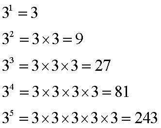 Тройка пять раз умножена сама на себя, или, если выразиться математически правильно, взята сомножителем 5 раз. В этом случае говорят: «Число 3 возведено в 5-ую степень». Записывают так: