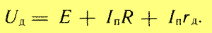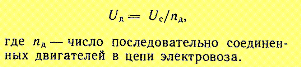 При пуске с заданным и неизменным пусковым током Iп напряжение Uд, подводимое к каждому из последовательно соединенных двигателей, уравновешивается э. д. с. и падением напряжения в реостате и обмотках тяговых двигателей: