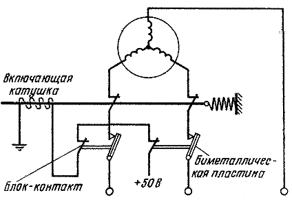Металлы, из которых изготовлены пластины, имеют разные коэффициенты линейного расширения. В случае длительной перегрузки или короткого замыкания элементы нагреваются и изгибаются. После того как прогиб пластин достигнет определенного значения, блокконтакты разорвут цепь включающей катушки и контактор отключится. Когда установится нормальная температура, элементы займут исходное положение. Реле тепловой защиты включают в каждые два провода, подводимые к двигателю.