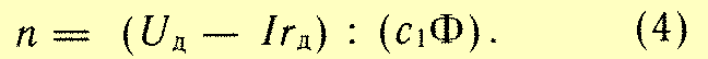 Эта формула позволяет определить зависимость между частотой вращения и магнитным потоком при постоянном значении приложенного напряжения. Эквивалентное сопротивление обмоток двигателя невелико и составляет обычно менее одной десятой Ома. Поэтому без ощутимой ошибки можно считать, что n ? Uд : C1Ф.