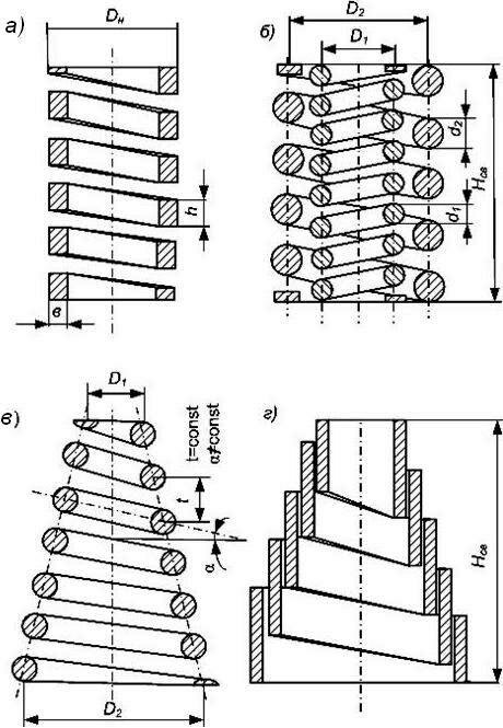 а - цилиндрические с прямоугольным сечением прутка; б - цилиндрические с круглым сечением прутка; в - конические с круглым сечением прутка; г - конические с прямоугольным сеченим прутка