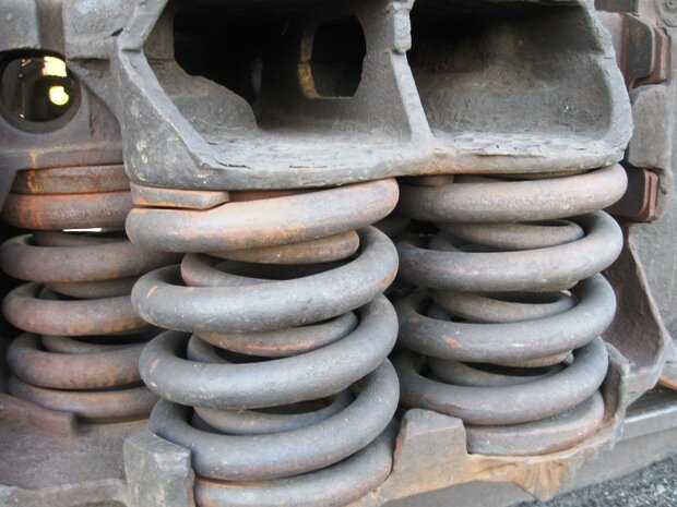 В рессорном подвешивании современных вагонов наибольшее распространение получили цилиндрические пружины. Они просты в изготовлении, надежны в работе и хорошо амортизируют вертикальные и горизонтальные толчки и удары. Однако они не могут гасить колебания обрессоренных масс вагона и поэтому применяются только в сочетании с гасителями колебаний.