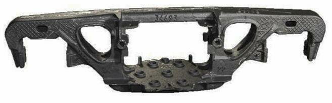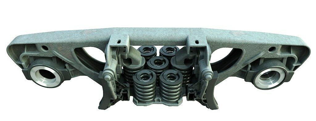 ТЕЛЕЖКА МОДЕЛИ 18-100Основной тип тележки, эксплуатируемой под грузовыми вагонами - двухосная с литыми боковыми рамами типа ЦНИИ-ХЗ (модель 18-100) (ЦНИИ прежнее название ВНИИЖТ, разработавшего данную конструкцию, X - первая буква фамилии автора Ханина, 3 - третий вариант). Данная тележка имеет достаточную прочность и надежность в эксплуатации. До 1972 г. тележку только так и называли - ЦНИИ-ХЗ. Сейчас чаще называют просто по номеру модели 18-100.