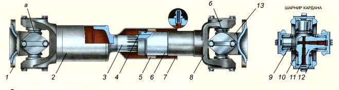 Для удержания смазки в игольчатых подшипниках и предотвращения попадания в них грязи, пыли и воды на цапфах крестовины имеются пробковые сальники 10. Игольчатые подшипники смазываются через масленки. Масло по каналам внутри цапф крестовины и по канавкам на торцах поступает к подшипникам. При этом одновременно смазываются и торцы цапф крестовины. С 1978 г. применяются карданные валы без масленки. В центре крестовины имеется клапан, через который при смазке шарниров выходит избыток масла, благодаря чему предотвращается пробивание пробковых сальников.