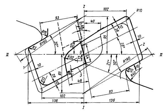 Для обеспечения взаимосцепляемости всех автосцепок СА-3 контур зацепления должен соответствовать ГОСТ 21447—75. Линия I-I является продольной осью автосцепки. Внутренние стенки кармана корпуса, в котором находится механизм автосцепки, смещены относительно этой оси на 10°, а замыкающая поверхность замка расположена под углом 15°. Вследствие такого размещения механизма сцепления равномерно распределяется продольное усилие между замком, малым и большим зубьями. Ось II-II (ось зацепления) перпендикулярна оси I—I и проходит через точку О, называемую центром зацепления. По оси II-II обычно устанавливают расстояние автосцепки от концевой балки.