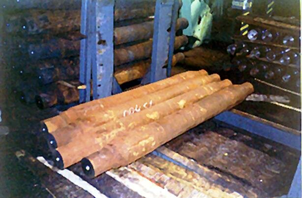 После этого черновые оси термически обрабатывают (нормализация или нормализация с отпуском) с последующим процессом правки на прессах или штампах, а затем очистки в дробеструйных конвейерных камерах. Черновые оси проходят приемо-сдаточные испытания от каждой партии одной плавки до 150 штук.