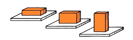 где греческой буквой "мю" обозначен коэффициент трения, а N - сила нормальной реакции. Вообще, конечно, логичнее бы говорить не о силе реакции, а о силе прижатия трущихся тел. Ведь чем сильнее прижаты трущиеся тела, тем лучше зацепляются шероховатости. Но какова природа силы прижатия? Эта сила прижатия может быть силой тяжести, как в случае с хоккейной шайбой на нашей картинке; может быть усилием сжатого воздуха, как в тормозных системах поездов; давлением масла, пружины, электромагнита и так далее. В любом случае она породит по третьему закону Ньютона ответную силу реакции N, равную по модулю, но противоположно направленную. Поэтому для универсальности мы и говорим о силе реакции. Да, сила реакции направлена в другую сторону, но мы ведь и формулу трения записали не в векторном виде. Сила трения не совпадает по направлению ни с силой прижатия, ни с силой реакции. Она направлена против движения (или ещё не начавшегося, возможного движения, если говорить о трении покоя). Коэффициент трения покоя зависит от материала трущихся поверхностей, чистоты их обработки. Его значение для разных материалов можно найти в таблице, либо оно дается в условиях задачи. Вот еще интересная задачка. Пытаемся сдвинуть с места лежащий на столе кирпич. Когда будет больше сила трения: когда он лежит плашмя, поставлен на узкую грань или поставлен на торец?
