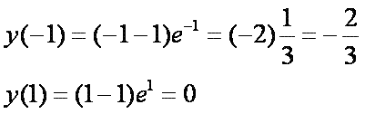 Ладно, приняли к сведению. Проверим значение функции на концах заданного отрезка, то есть при Х = -1 и при Х = 1. Как договорились, для прикидочных расчетов будем число е считать равным 3. ( на самом деле оно равно 2,7183 и так далее, бесконечное число знаков )
