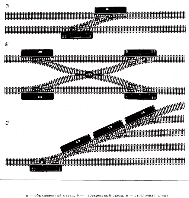 Переход подвижного состава с одного пути на другой обеспечивают устройства по соединению и пересечению путей, относящиеся к их верхнему строению. Соединение путей друг с другом осуществляют стрелочными переводами, а пересечение путей — глухими пересечениями. Применяя стрелочные переводы и глухие пересечения, создают соединения путей, называемые стрелочными улицами и съездами.