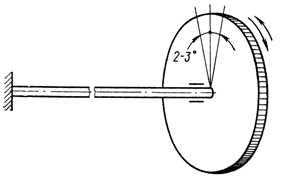 Возьмем относительно длинный упругий стержень, жестко укрепленный в стене, с маховиком, сидящим на его противоположном конце (рис. 60); пусть вал поддерживается подшипником. Приложим к маховику вращающий момент, закрутим упругий стержень (он имеет небольшой диаметр) поворотом маховика на некоторый угол (2—3°), а затем отпустим его. Маховик начнет совершать свободные или собственные колебательные движения под действием сил упругости материала стержня и сил инерции маховика подобно маятнику. В отличие от колебаний маятника эти колебания называются крутильными. Будем к маховику прикладывать вращающий момент с переменной частотой. Тогда при частоте, равной частоте собственных колебаний маховика, наступит резонанс. При резонансе даже сравнительно незначительная сила может вызвать колебания с чрезвычайно большой амплитудой.