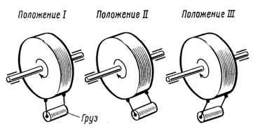 Предположим, что вал вращается с постоянной частотой вращения, но меньшей или большей критической. В этом случае подвеска груза направлена по радиусу маховика (положение I). При этом груз антивибратора не оказывает воздействия на систему, вращаясь вместе с маховиком (валом) с равномерной скоростью.