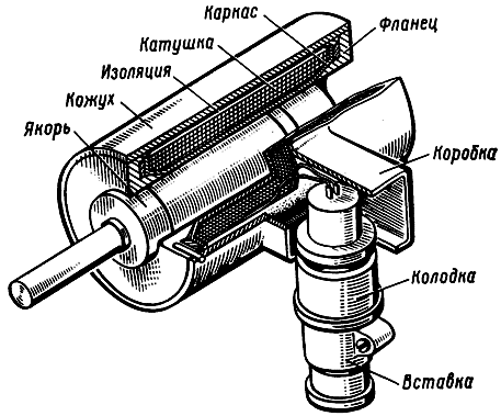 Индуктивный датчик представляет собой катушку со стальным якорем (рис. 93).