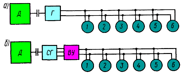 Рис. 129. Структурные схемы электрической передачи: