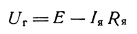 где С — постоянный коэффициент, учитывающий число витков обмотки якоря, число пар полюсов и другие постоянные величины, характеризующие данный генератор. Напряжение на выводах генератора меньше его э.д.с. на величину падения напряжения в цепи якоря. Падение напряжения в цепи якоря определяется по закону Ома и равно произведению тока якоря Iя на сопротивление цепи якоря Rя. Следовательно, напряжение на выводах генератора