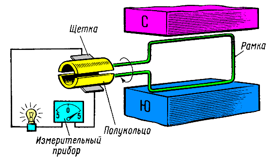 Присоединив к контактным пластинам внешнюю цепь с электроизмерительным прибором, фиксирующим величину индуктируемого тока, убедимся, что рассмотренное устройство действительно является генератором постоянного тока.