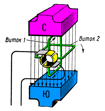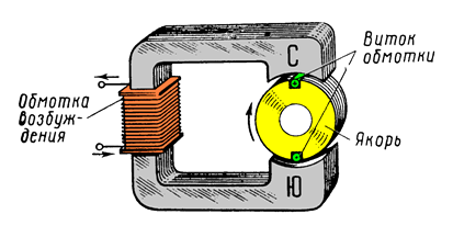 Этот цилиндр с помещенной на нем обмоткой и коллектором называется якорем генератора.