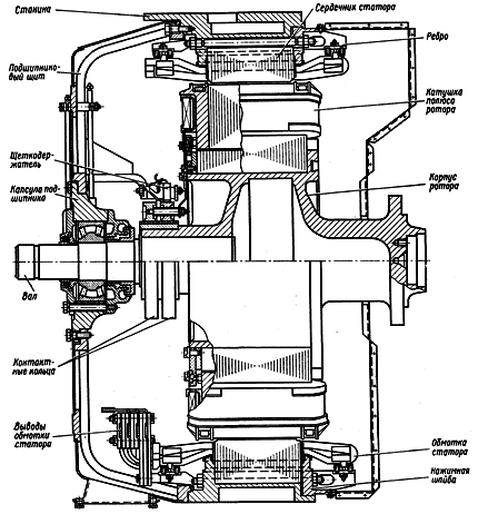 Рис. 156. Синхронный тяговый генератор тепловоза 2ТЭ116 (продольный разрез)