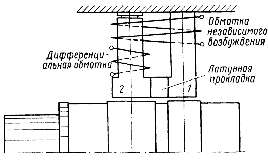 Направление тока в независимой и дифференциальной обмотках подобрано так, что их магнитные потоки имеют противоположное один другому направление.