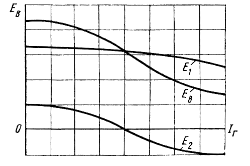Рис. 158. Зависимость ЭДС возбудителя от силы тока тягового генератора