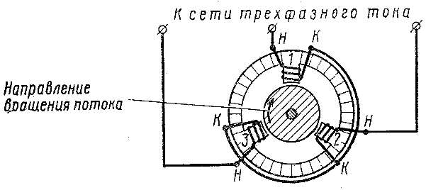Рис. 177. Схема трехфазного асинхронного электродвигателя