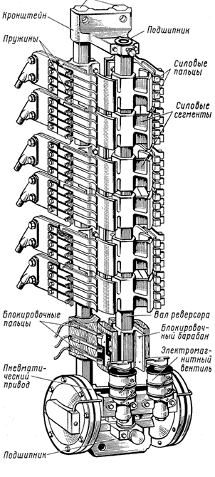 Рис.198. Реверсор барабанного типа тепловоза ТЭ3