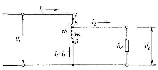 Электродвижущую силу самоиндукции в первичной обмотке трансформатора можно непосредственно использовать для получения тока во вторичной цепи. Для этого вторичная цепь с резистором нагрузки Rн подключается на часть витков БО первичной обмотки АО (рис. 220).