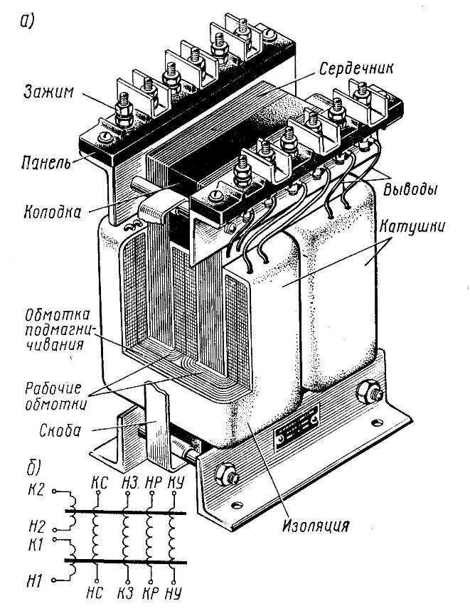 Обмотка управления потребляет небольшую мощность. Благодаря этому с помощью небольшого тока, затрачивая незначительную мощность, можно регулировать в широких пределах достаточно большую по величине мощность нагрузки. Отсюда такие аппараты получили свое наименование усилителей.