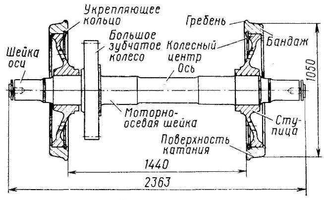 Рис. 248. Обычная колесная пара тепловоза (разрез)