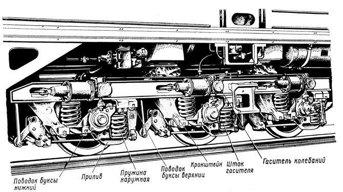 Рис. 258. Общий вид индивидуального рессорного подвешивания тепловоза 2ТЭ10В
