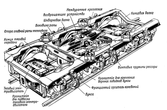 Рис. 264. Общий вид бесчелюстной тележки тепловоза 2ТЭ10В