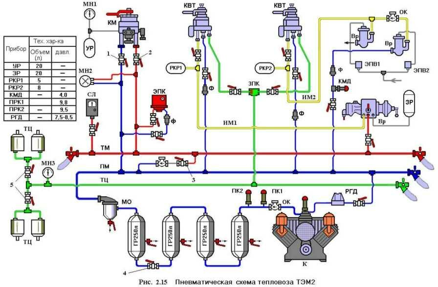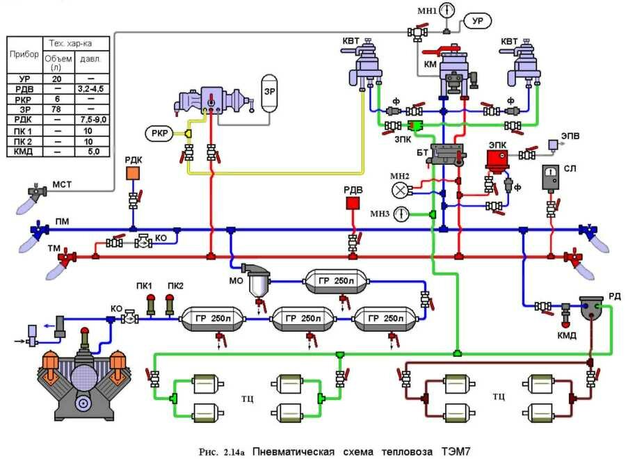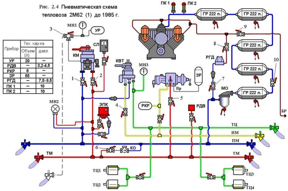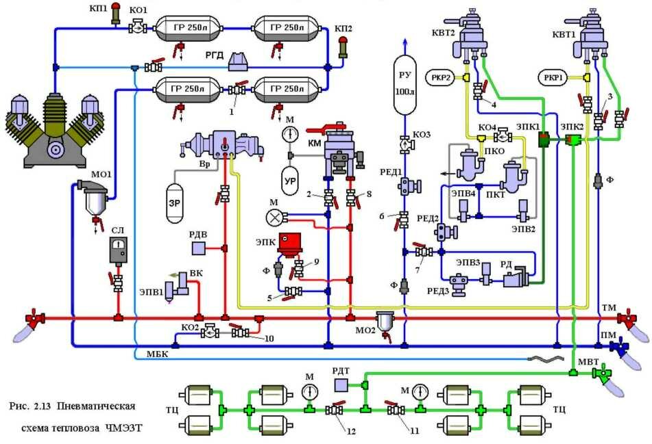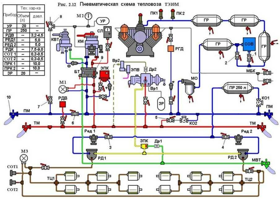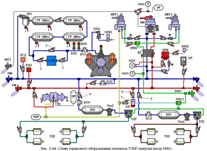 Схема тормозного оборудования тепловоза 2ТЭ10М