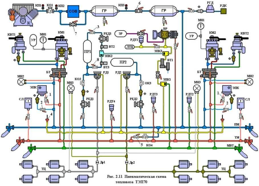 Схема тормозного оборудования тепловоза ТЭП70 Изображение Описание