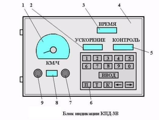 Для удобства контроля скорости движения и ввода данных в модуль памяти изменен внешний вид и расположение кнопок на блоке индикации КПД-3, а также в дополнение к цифровому индикатору скорости на лицевой панели БИ помещен аналоговый индикатор скорости. Такой комплекс получил обозначение КПД-ЗВ.