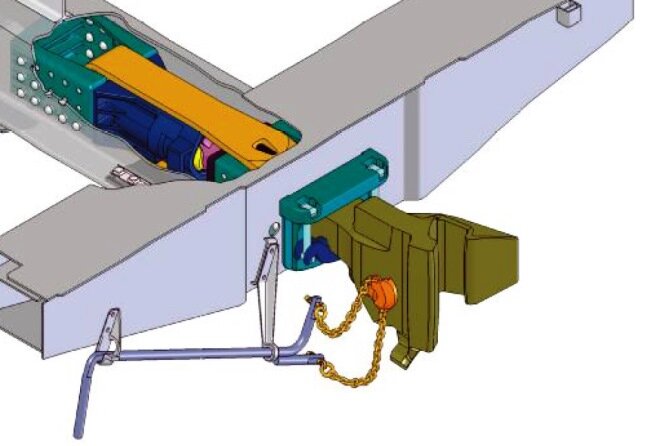 Чтобы избежать такой опасности, была поставлена задача исключить возможность расцепления и падения на путь автосцепки при ее обрыве или выпадении клина тягового хомута. Это было достигнуто разработанным во ВНИИЖТе расцепным приводом с двумя цепями.