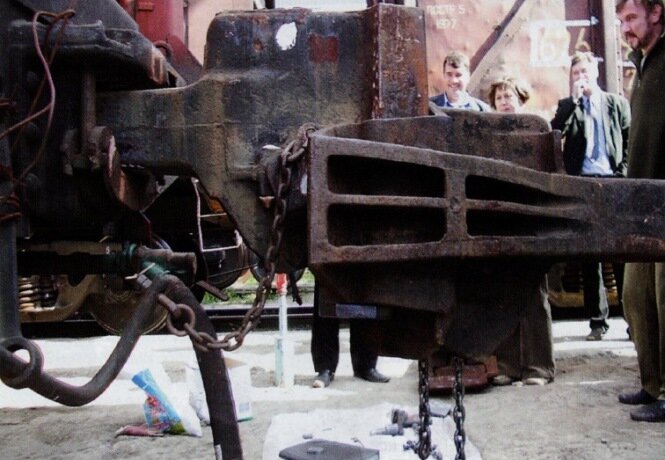 В неблагоприятном случае после падения автосцепки на путь она может попасть на рельс и вызвать сход подвижного состава.